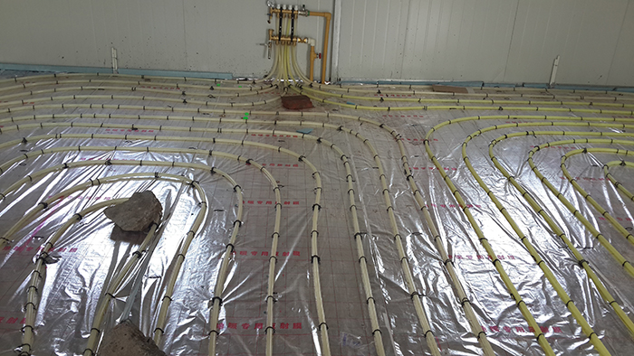 ?圖為地暖施工現(xiàn)場(chǎng)