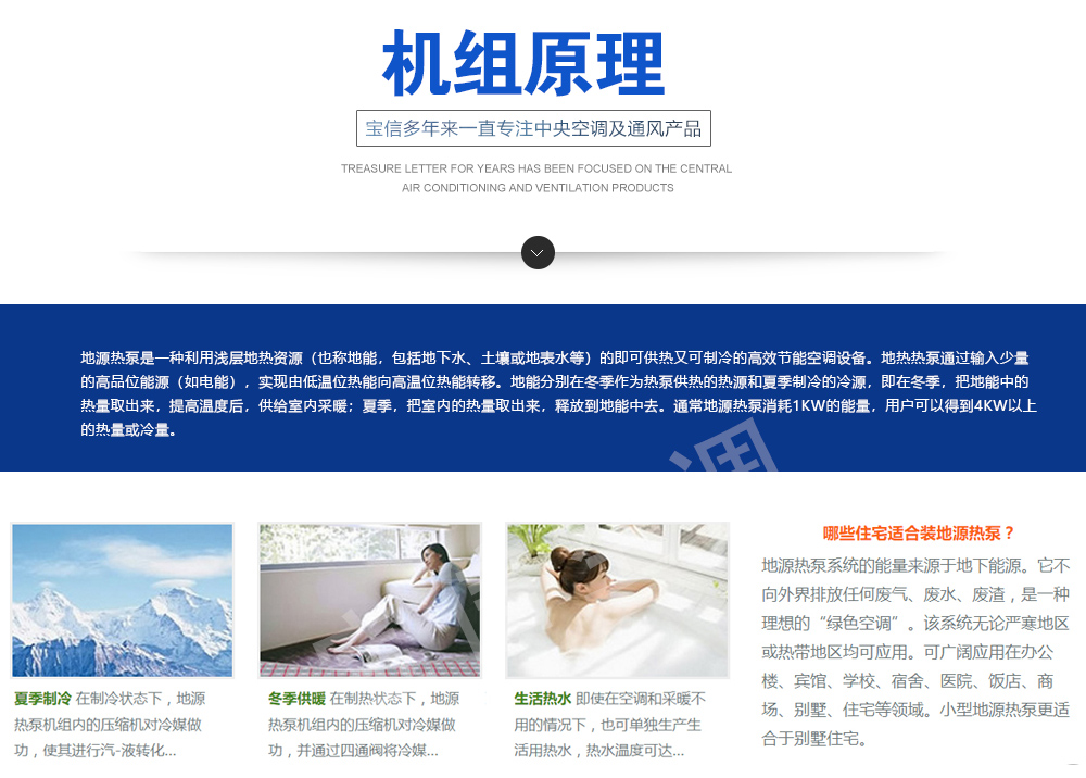 水/地源熱泵中央空調(diào)式我公司吸取世界各國地源熱泵產(chǎn)品精華,自主開發(fā)的新型供暖設(shè)備.該機組既保持與國外先進技術(shù)同步,又適應(yīng)中國國情,是一種集制冷、供暖、供生活熱水為一體的高效節(jié)能的綠色環(huán)保中央空調(diào)。