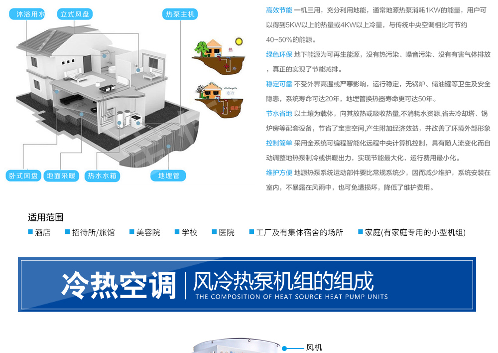 水/地源熱泵中央空調(diào)式我公司吸取世界各國地源熱泵產(chǎn)品精華,自主開發(fā)的新型供暖設(shè)備.該機組既保持與國外先進技術(shù)同步,又適應(yīng)中國國情,是一種集制冷、供暖、供生活熱水為一體的高效節(jié)能的綠色環(huán)保中央空調(diào)。