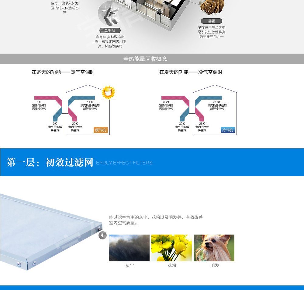 新風(fēng)機(jī)組是提供新鮮空氣的一種空氣調(diào)節(jié)設(shè)備。功能上按使用環(huán)境的要求可以達(dá)到恒溫恒濕或者單純提供新鮮空氣。工作原理是在室外抽取新鮮的空氣經(jīng)過除塵、除濕(或加濕)、降溫(或升溫)等處理后通過風(fēng)機(jī)送到室內(nèi),在進(jìn)入室內(nèi)空間時(shí)替換室內(nèi)原有的空氣。當(dāng)然以上所提到的功能得根據(jù)使用環(huán)境的需求來定,功能越齊全造價(jià)越高。