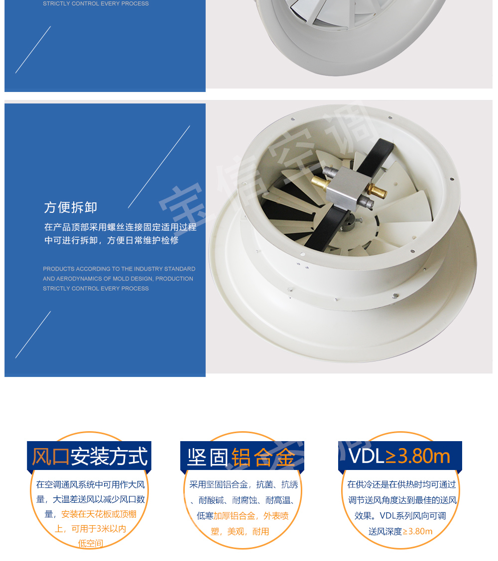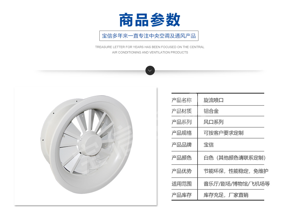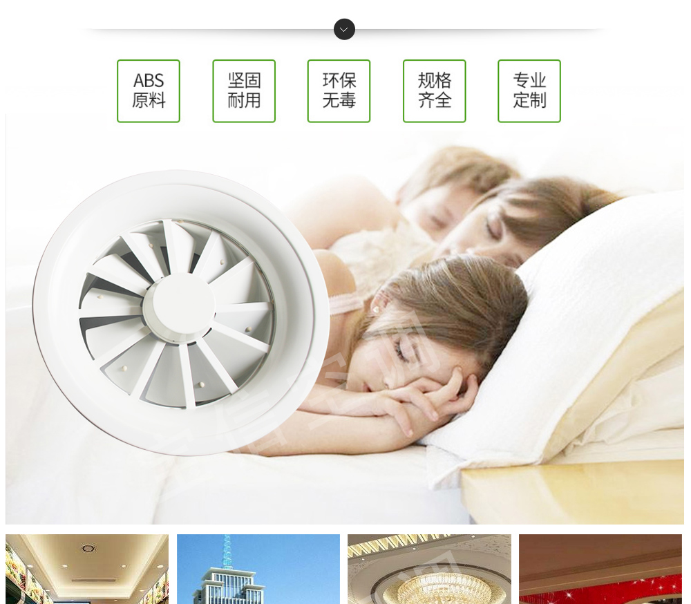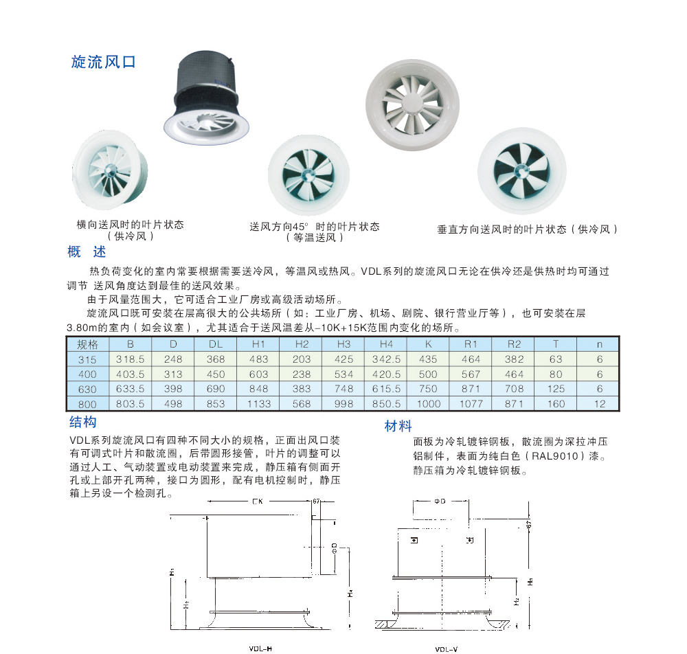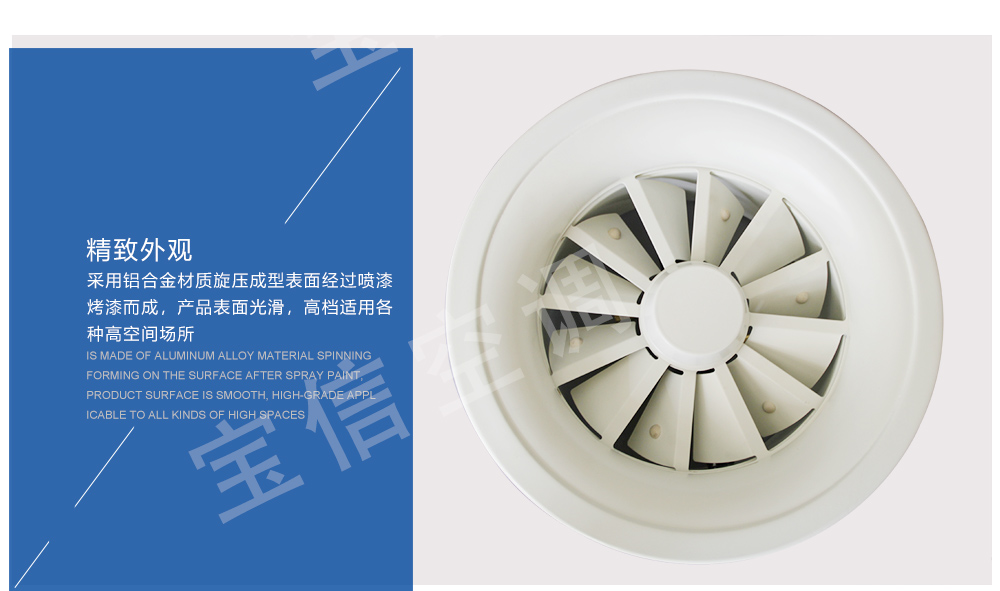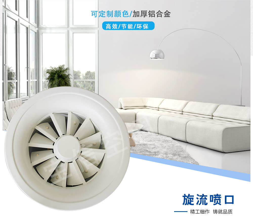 旋流風(fēng)口既可安裝在層高很到的公共場所(如:工業(yè)廠房、機場、劇院、銀行營業(yè)廳等),也可安裝在層3.8m的室內(nèi)(如會議室),尤其適合于送風(fēng)溫差從-10K+15K范圍內(nèi)變化的場所。