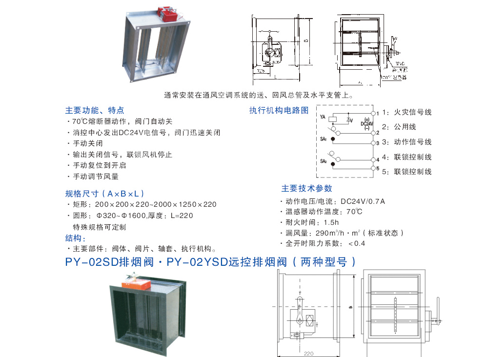 PY-02YSD排煙閥可遠(yuǎn)控手動(dòng)開啟,遠(yuǎn)控手動(dòng)復(fù)位