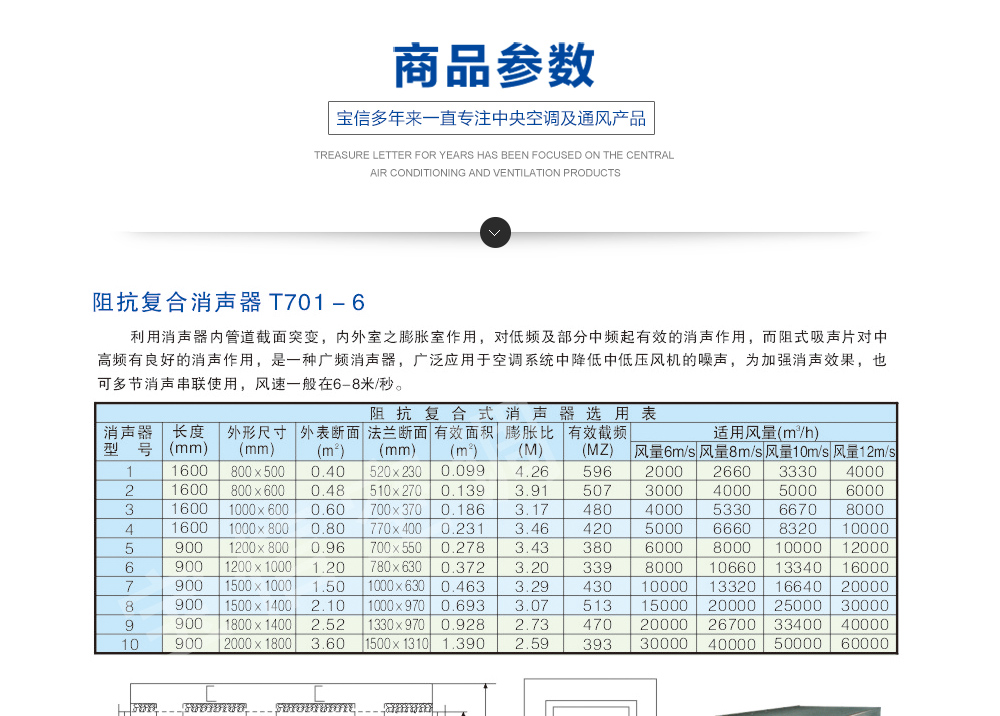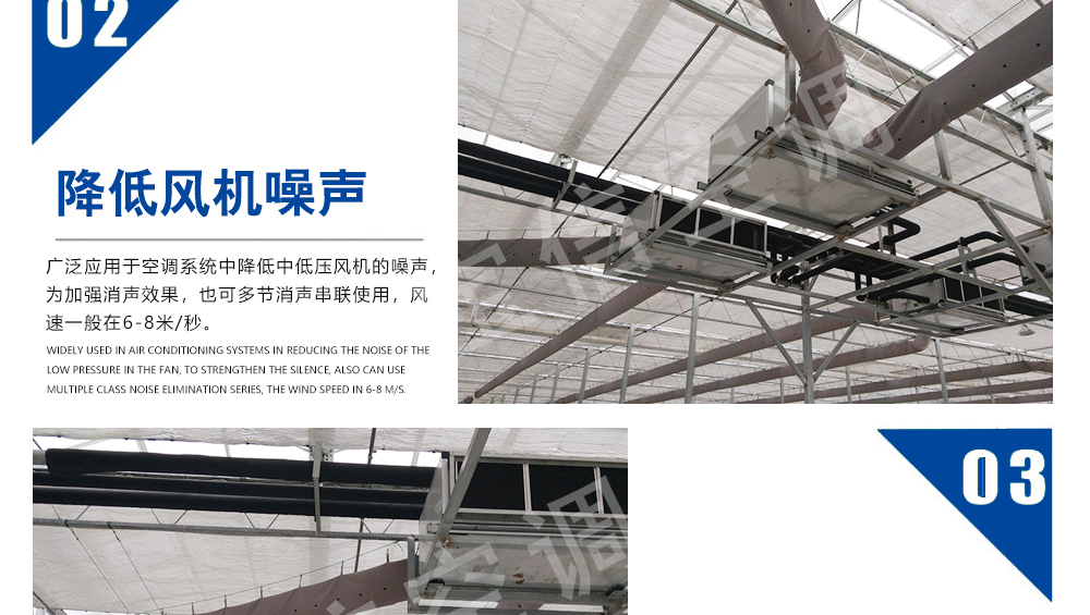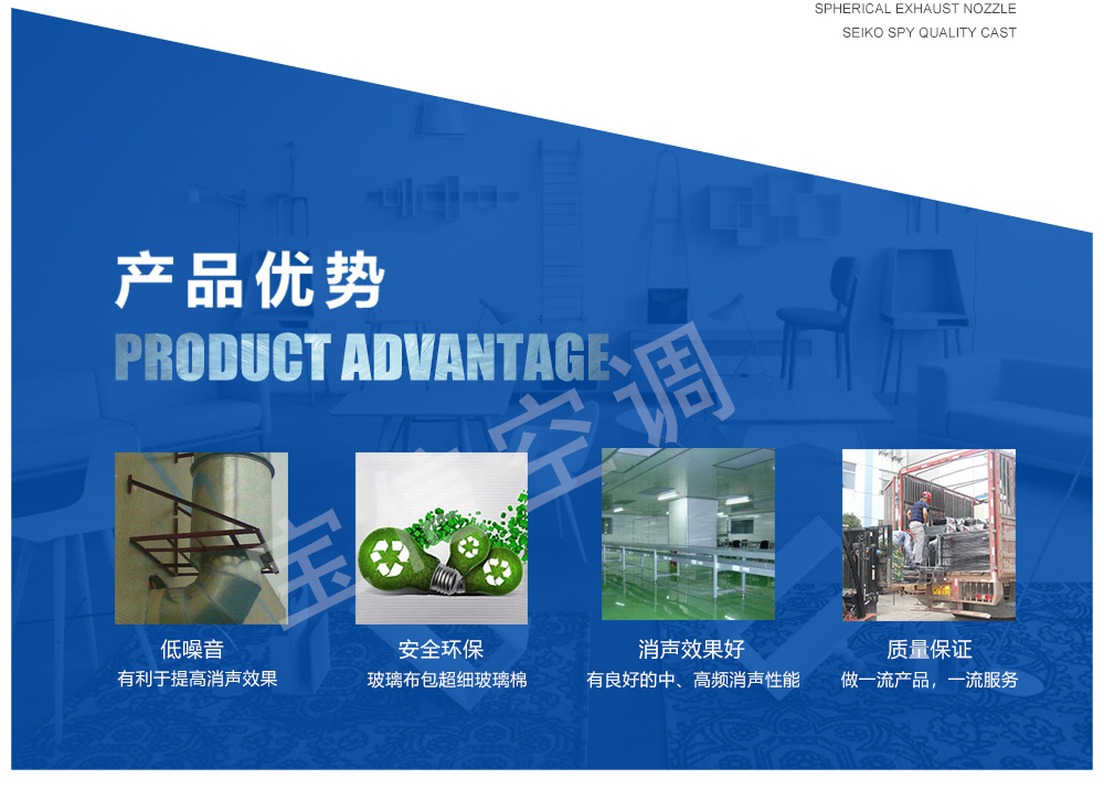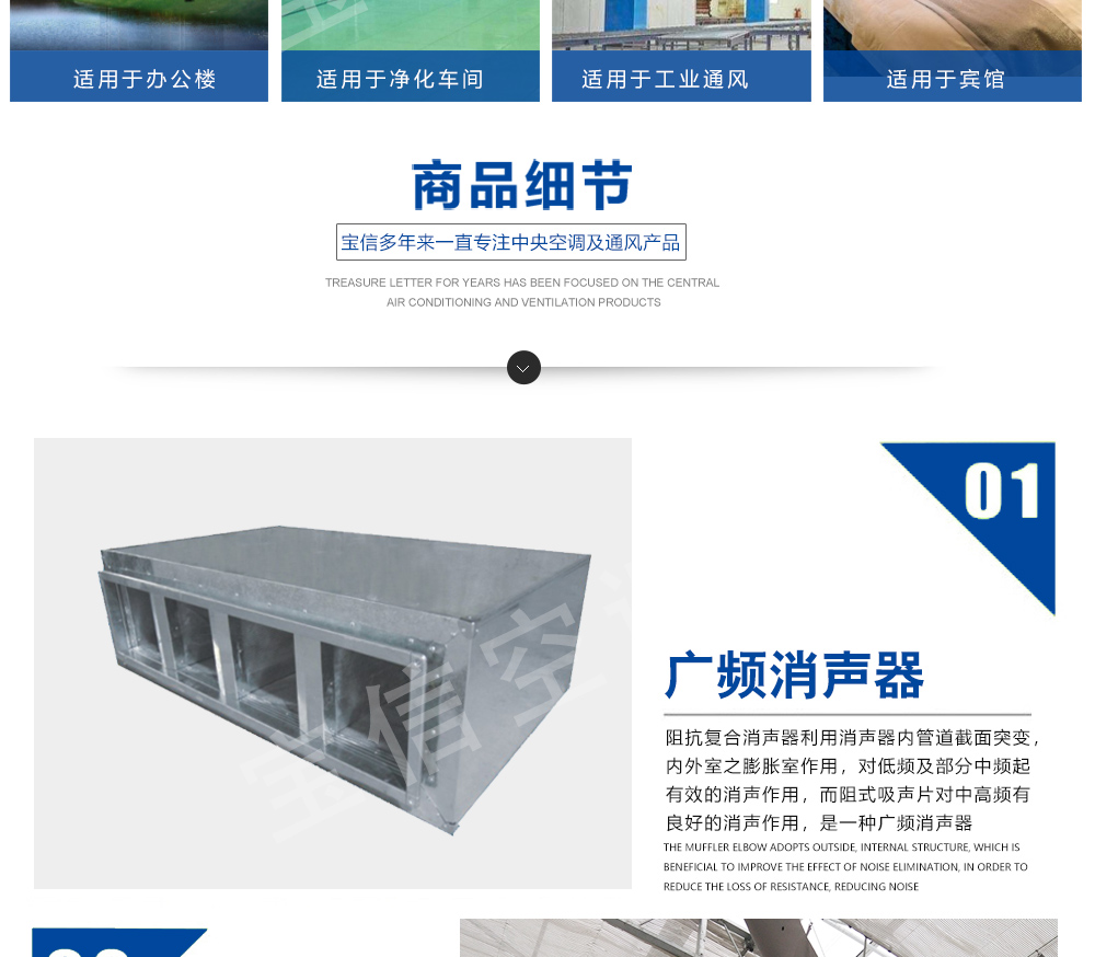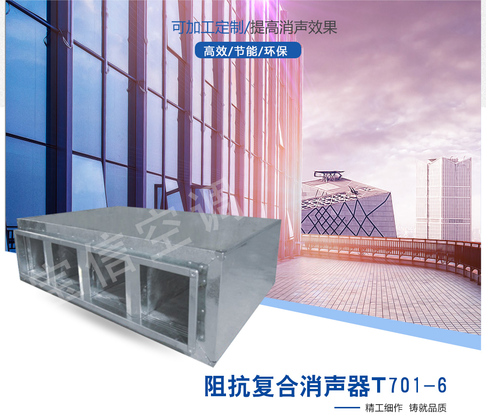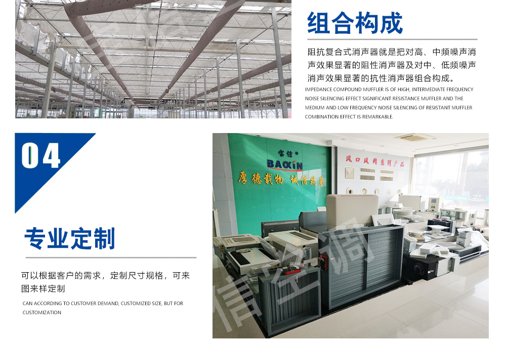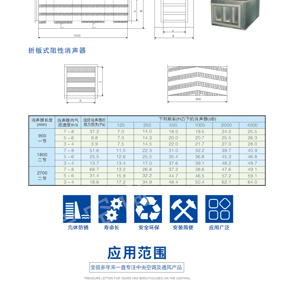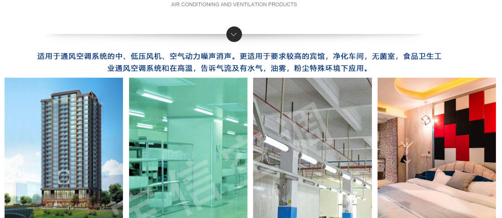 阻抗復(fù)合消聲器利用消聲器內(nèi)管道截面突變,內(nèi)外室之膨脹室作用,對低頻及部分中頻起有效的消聲作用,而阻式吸聲片對中高頻有良好的消聲作用,是一種廣頻消聲器,廣泛應(yīng)用于空調(diào)系統(tǒng)中降低中低壓風(fēng)機(jī)的噪聲,為加強(qiáng)消聲效果,也可多節(jié)消聲串聯(lián)使用,風(fēng)速一般在6-8米/秒。?